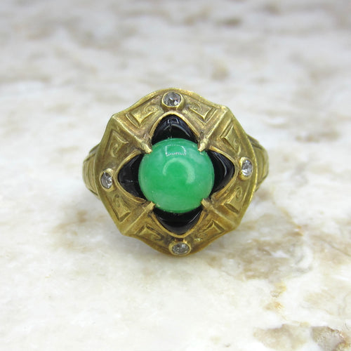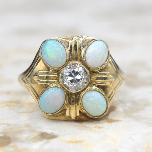 Antique Art Deco Peacock Ring 14k White Gold with Diamond -