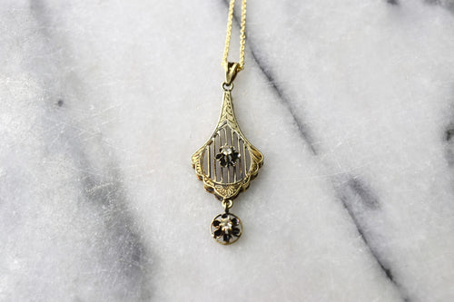 Antique Edwardian 14k Gold Lavaliere Charm with Diamond and Pearl -